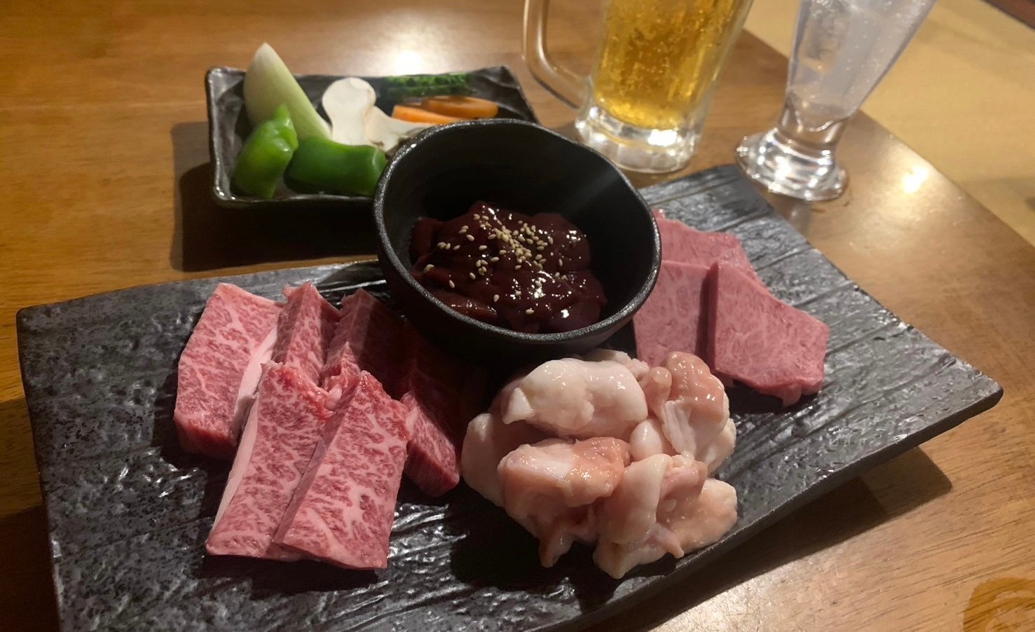 夕食は歩いて近くの焼肉屋さんへ行きました。