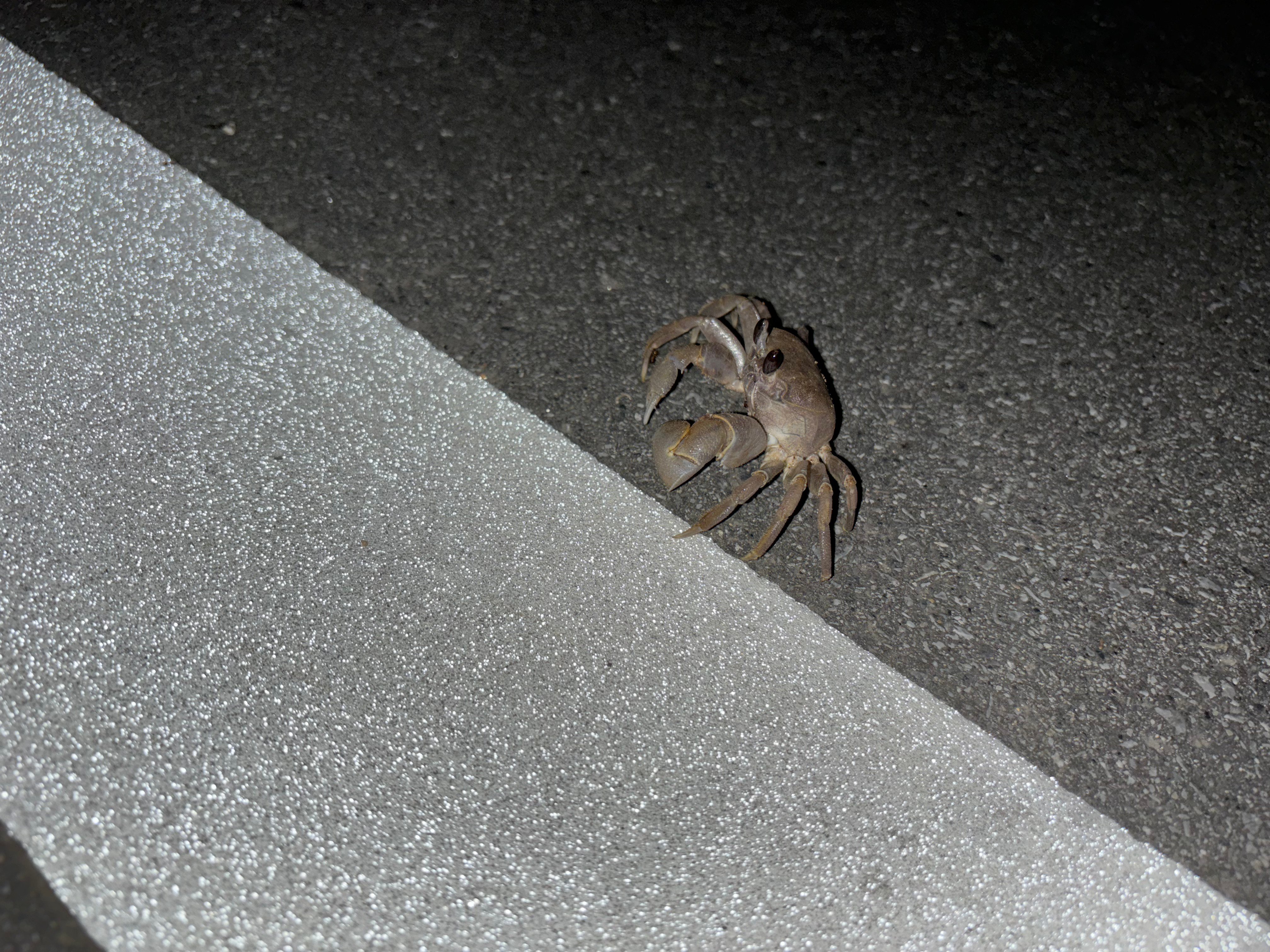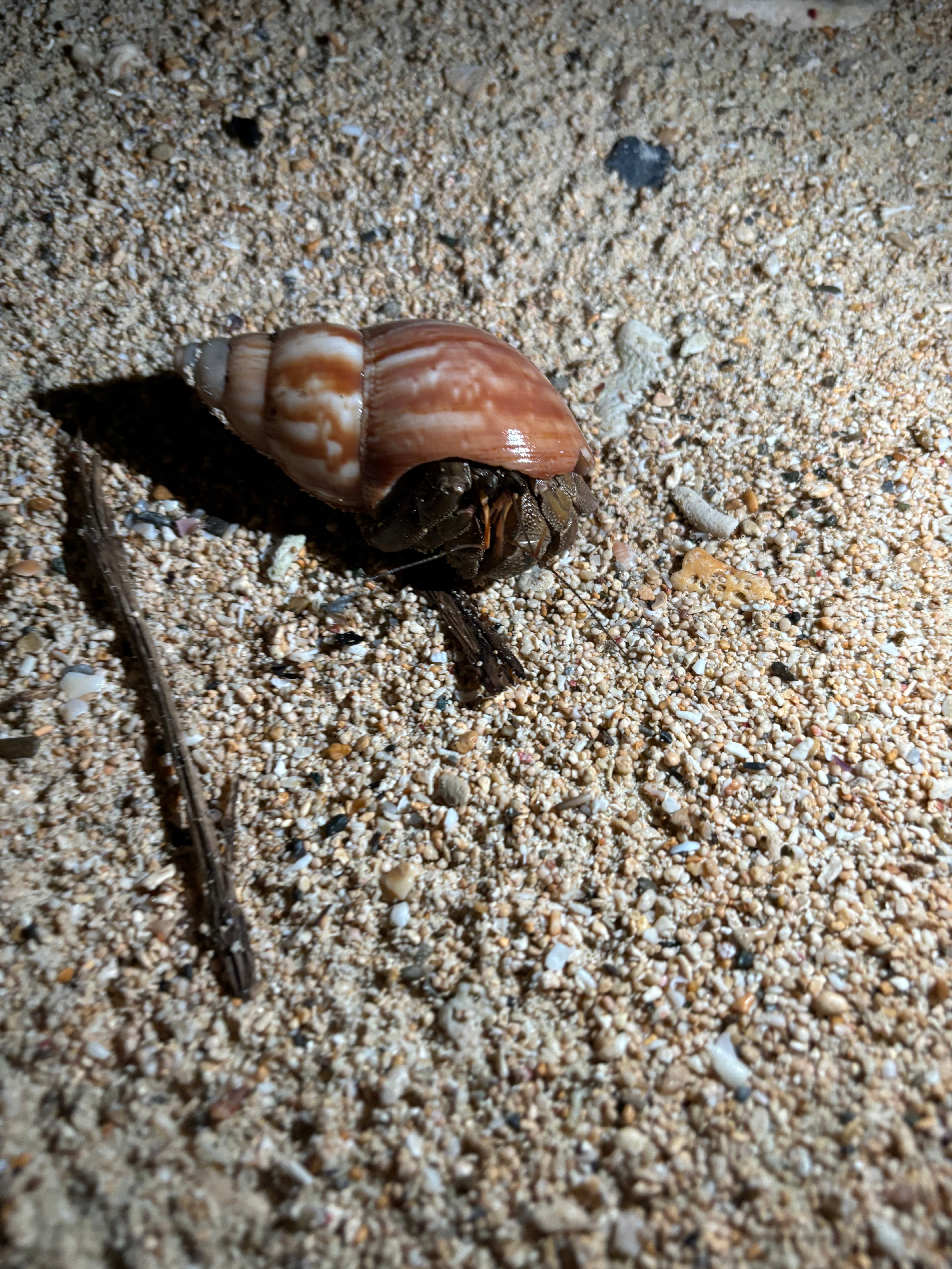 帰りに海岸に行ったら、やどかりさんとカニさんに会いました。