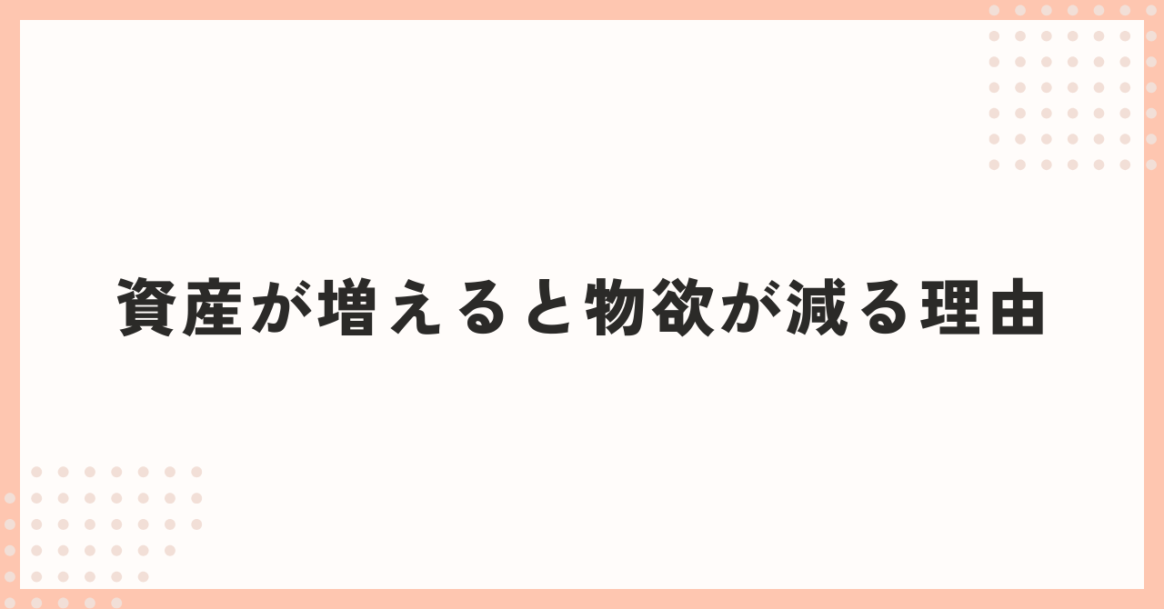 資産が増えると物欲が減ってきたというのは事実なのかもしれない。