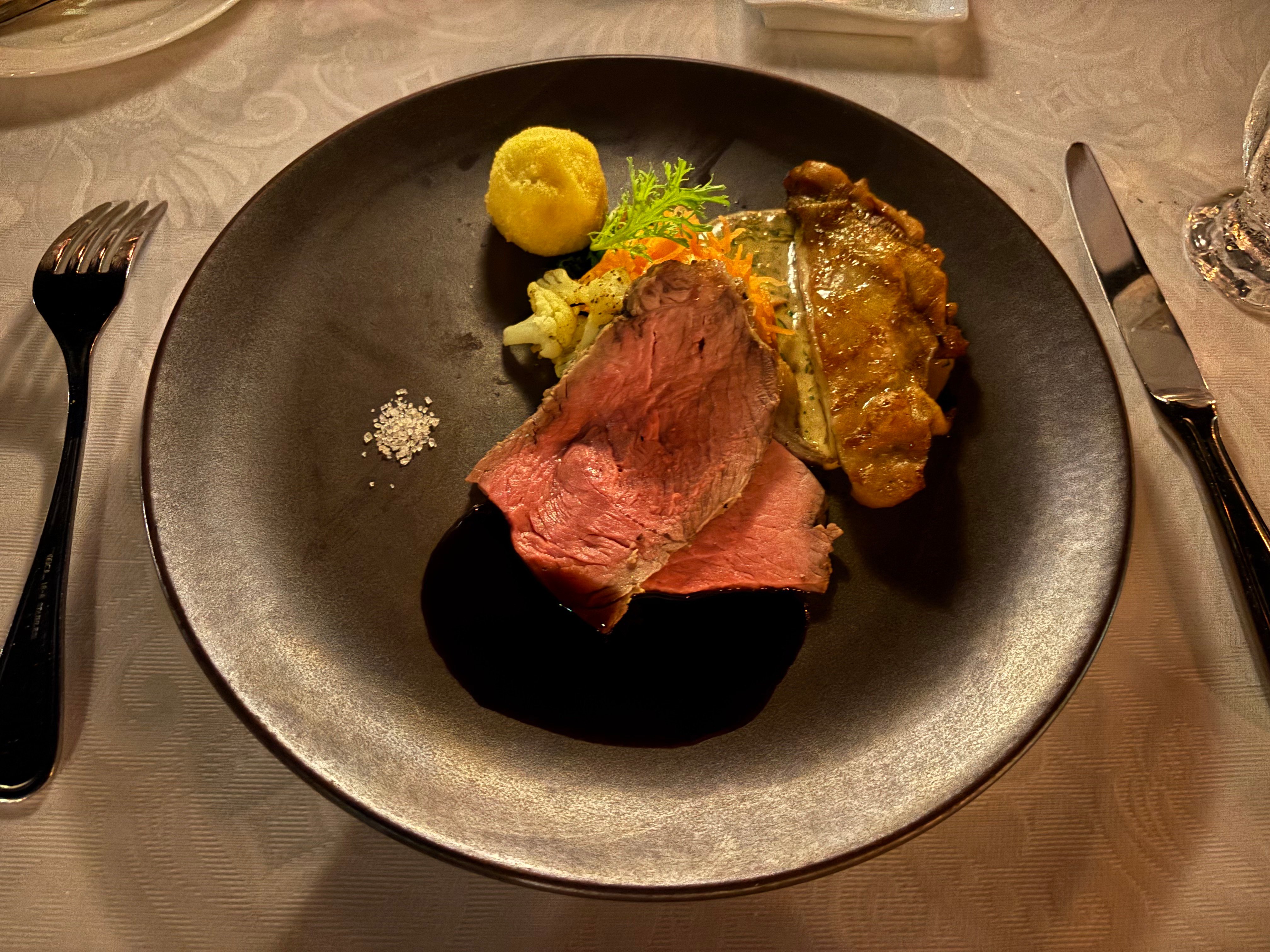 バーボン風味のグリルチキンとローストビーフ
