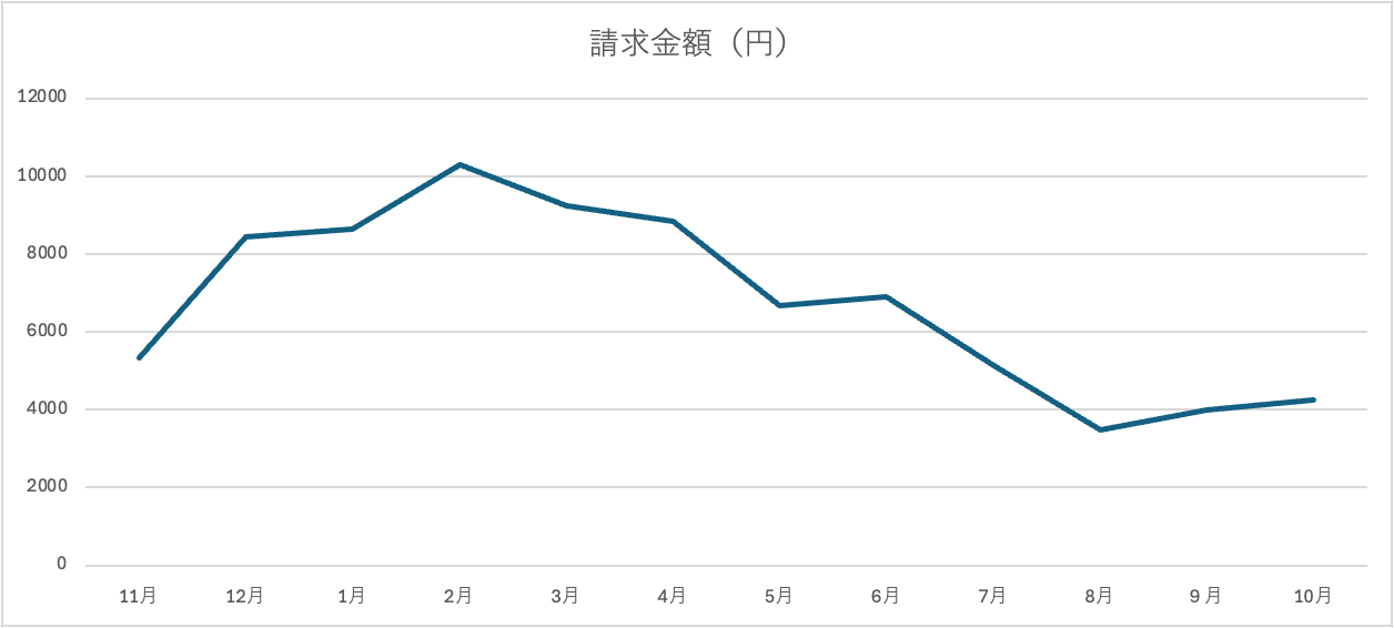 12月〜4月ごろにかけてガス代が高くなっているのが分かります。