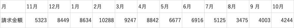実際に筆者が使用した1年間のガス代は以下の通りです。