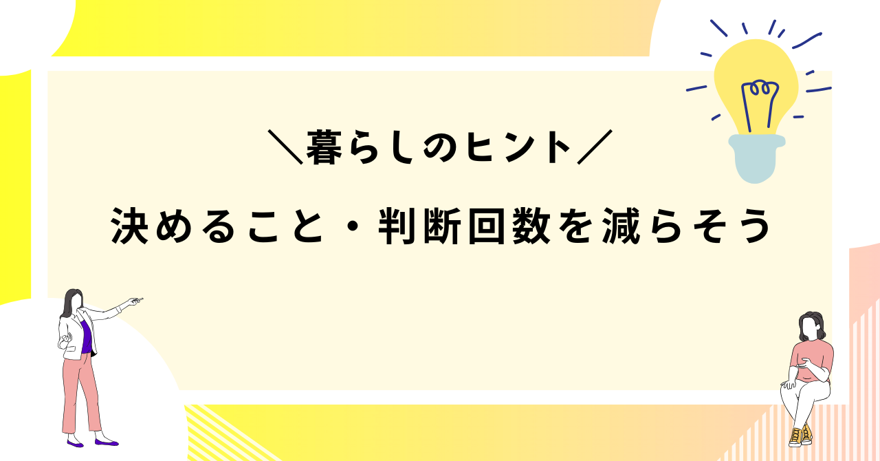 毎日の小さな判断を気にしていなかった方も多いと思います。毎日を振り返って、食事や洋服、家事など些細な判断をルーティン化ややめることを検討してみてはいかがでしょうか。きっと生活が楽になったり、他のタスクに脳がリソースされて効率UPにつながります。